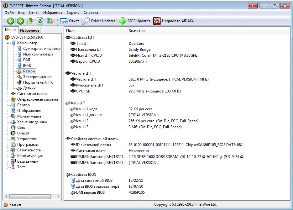 EVEREST Ultimate Edition – многофункциональная утилита для предоставления полной информации пользователю о его компьютере. Программа отобразит подробные данные обо всех программных и аппаратных компонентах системы на русском языке.